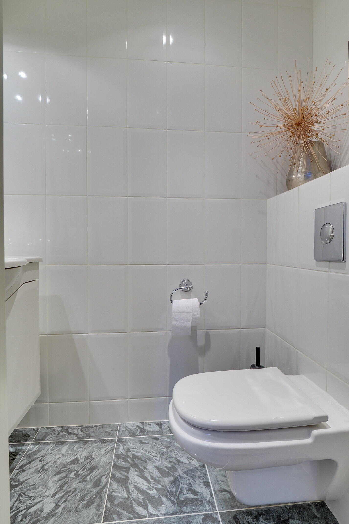 The first floor offers three bedrooms, one of which is currently furnished as a spacious dressing room. The bathroom is equipped with a bath, walk-in shower and washbasin. There is also a separate toilet on this floor.