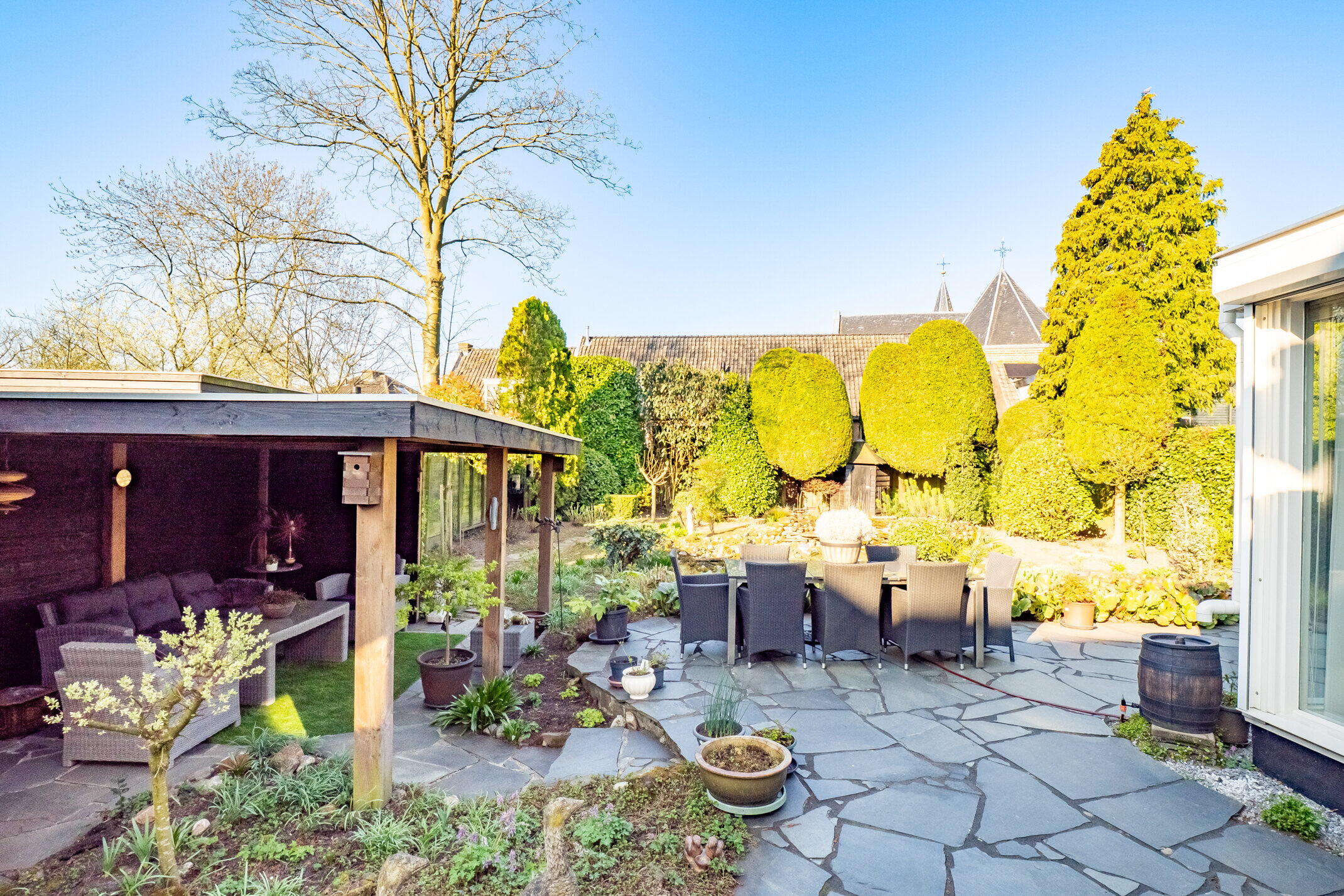 Bijzonder aan deze woning is ook de vrijstaande dubbele garage, bereikbaar via de Kerkweg. Deze garage biedt niet alleen ruimte voor twee auto's, maar is dankzij de daglichttoetreding via lichtkoepels en een aparte toegangsdeur naar de tuin ook uitermate geschikt om te transformeren tot bijvoorbeeld een kantoor aan huis, atelier, praktijkruimte of zelfstandige woonruimte voor een au pair of logés. De combinatie van privacy, bereikbaarheid en volume maakt deze ruimte multifunctioneel en toekomstbestendig. Voor de garage is overigens parkeergelegenheid voor meerdere auto's.