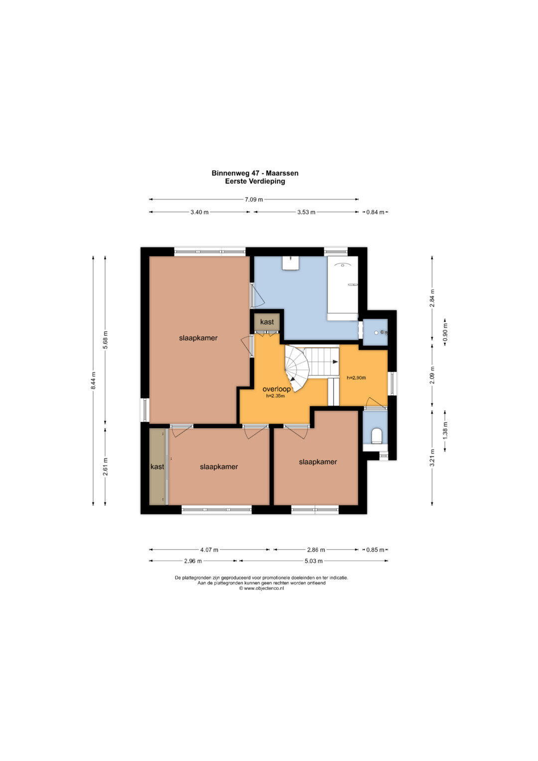 De eerste verdieping biedt drie slaapkamers, waarvan één momenteel is ingericht als royale kledingkamer. De badkamer is uitgerust met een ligbad, inloopdouche en wastafelmeubel. Ook is er een apart toilet op deze verdieping aanwezig.