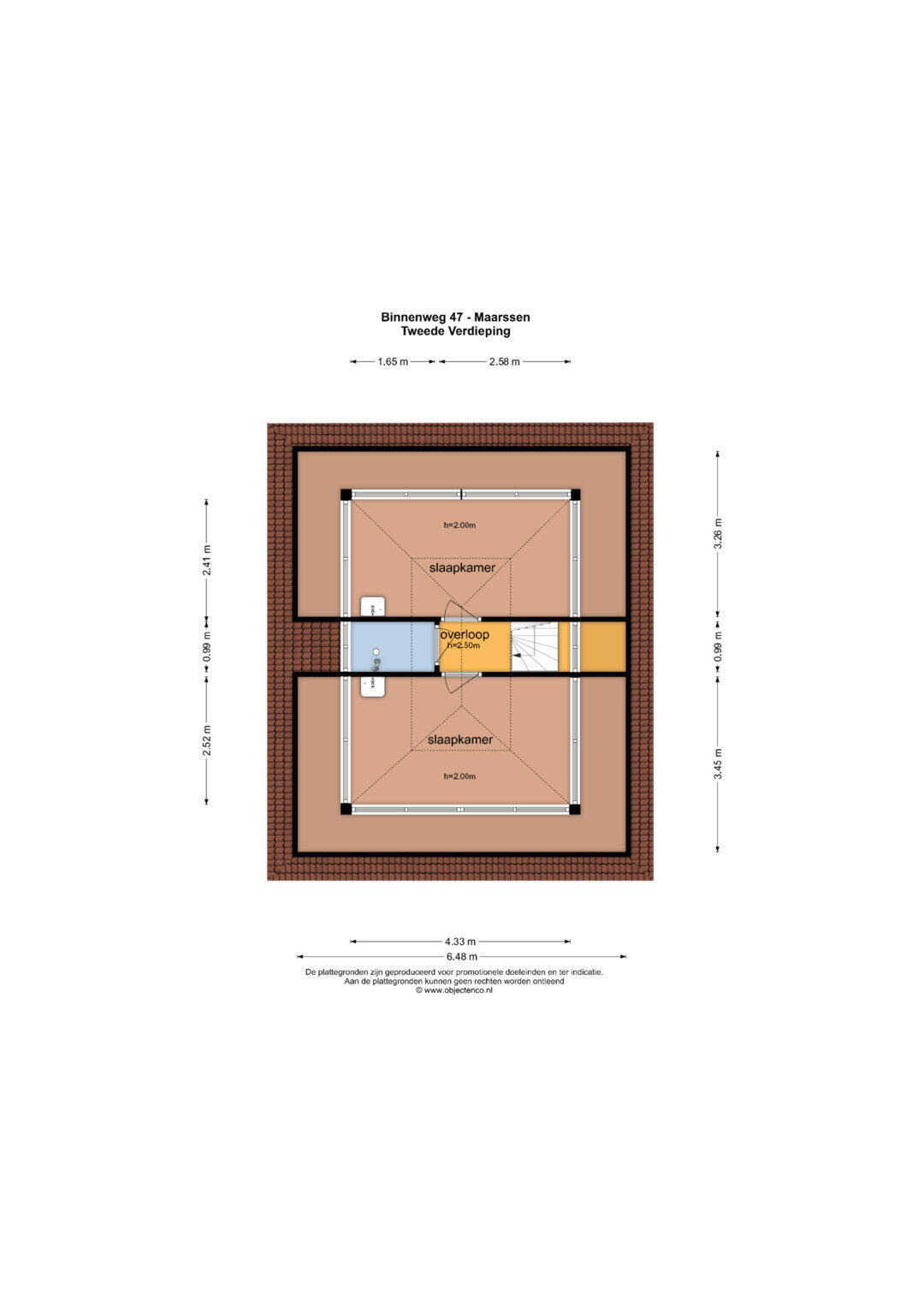 Op de tweede verdieping bevinden zich nog twee slaapkamers van gelijke grootte en elk voorzien van een eigen wastafel. Tevens bevindt zich hier een tweede badkamer met douche.
